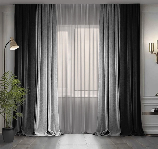 Комплект двоколірних штор Декор-Ін Мікровелюр 300x250 2 шт Світло-сірі з Чорним (ROZ6400067582)