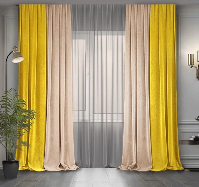 Комплект двоколірних штор Декор-Ін Мікровелюр 300x275 2 шт Жовті з Бежевим (ROZ6400065655)