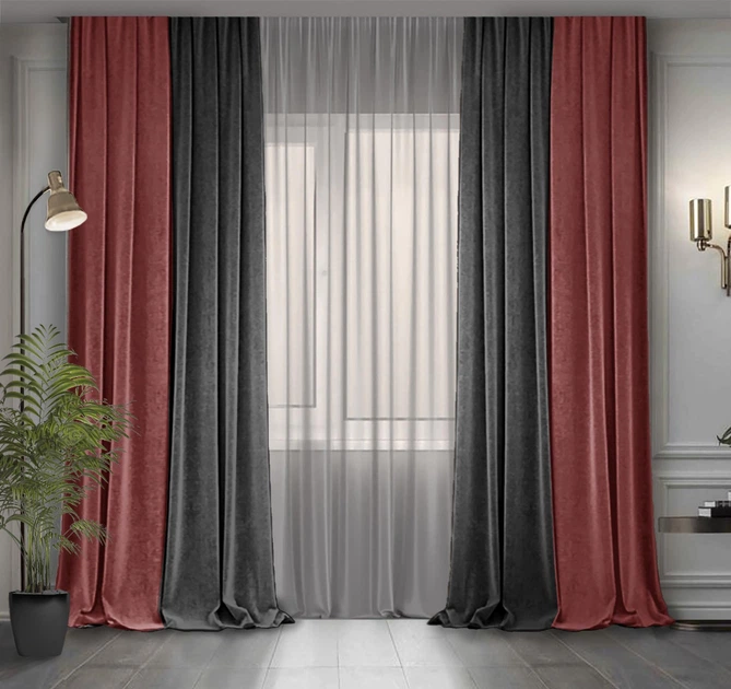 Комплект двоколірних штор Декор-Ін Мікровелюр 300x270 2 шт Темно-сірі з Теракотовим (ROZ6400067502)