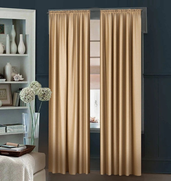 Комплект штор Декор-Ін Гюрем шовк Сходу 175х265 2 шт. Золотисто-бежевих (ROZ6400054577)