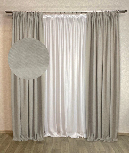 Комплект штор Diamond мікровелюр 200х240 сіро-бежевий №710, 2 шт.