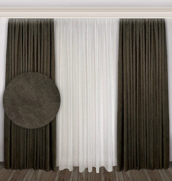 Комплект штор EkoShtory мікровелюр 200х225 см, болотяних №2524 2шт