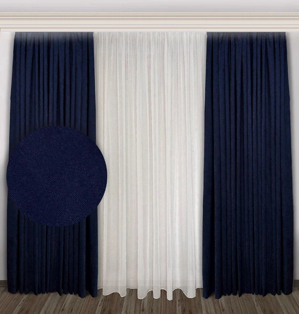 Комплект штор EkoShtory мікровелюр 200х230 cм, черно-синіх №2206 2шт