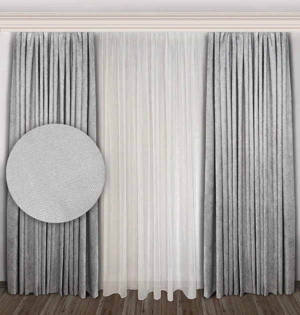 Комплект штор EkoShtory мікровелюр 200х265 см, сріблястих №2209 2шт