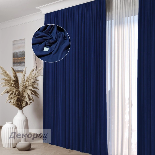 Комплект штор Мікровелюр Синій джинс 2 шт 250х240