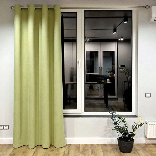 Штора на сірих люверсах 1 шт 355х250 см мікровелюр Світло-зелений