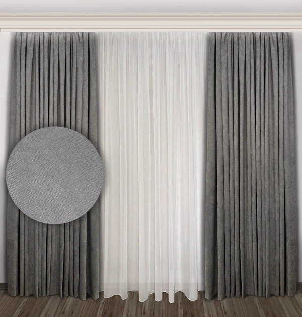 Комплект штор EkoShtory мікровелюр 200х265 cм, сіро-блакитних №2114 2шт