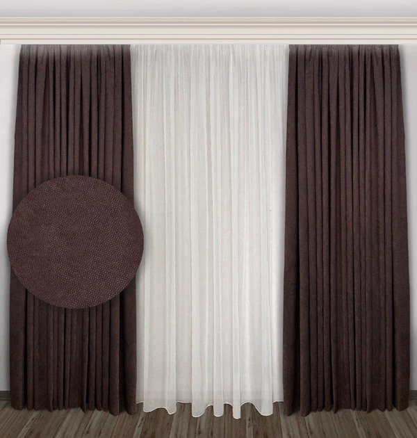 Комплект штор EkoShtory мікровелюр 200х225 см, каштанових №2504 2шт