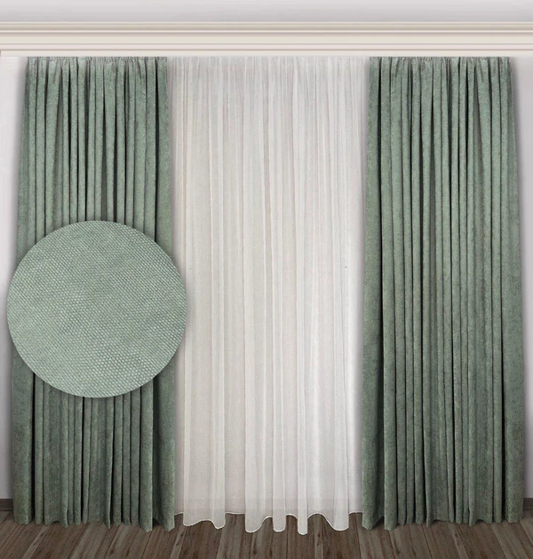 Комплект штор EkoShtory мікровелюр 200х250 cм, м'ятних №2248 2шт