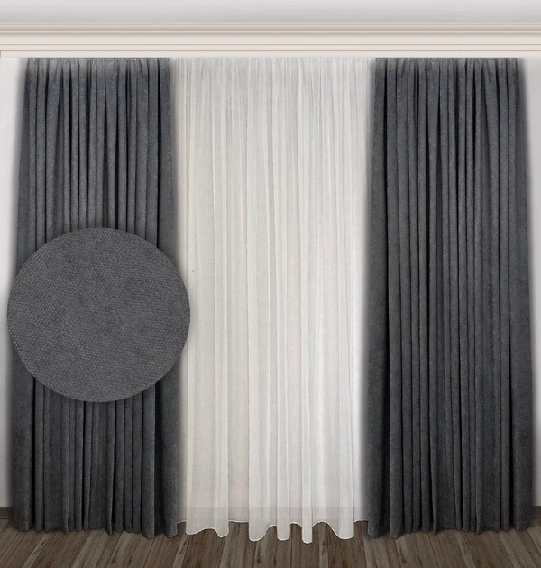 Комплект штор EkoShtory мікровелюр 200х265 cм, графітових №2505 2шт