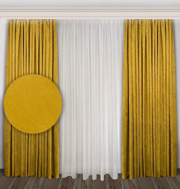 Комплект штор EkoShtory мікровелюр 200х230 см, шафранових №2531 2шт