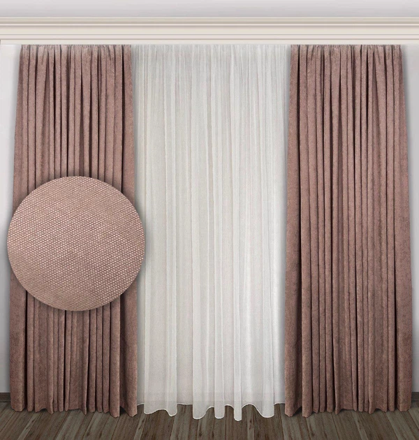 Комплект штор EkoShtory мікровелюр 200х235 см, коричнево-бежевих №2521 2шт