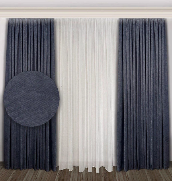 Комплект штор EkoShtory мікровелюр 200х250 см, сіро-фіолетових №2600 2шт