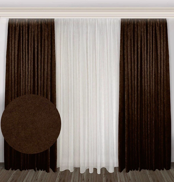 Комплект штор EkoShtory мікровелюр 200х255 см, темно-коричневий №2217 2шт