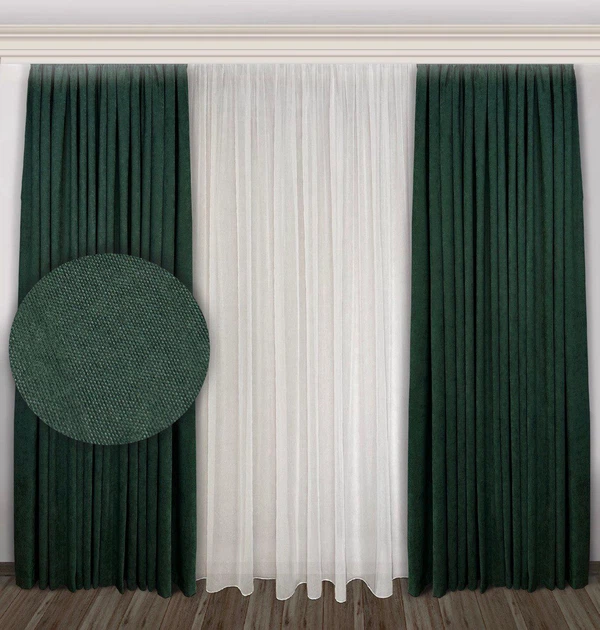 Комплект штор EkoShtory мікровелюр 200х285 cм, зелених №2588 2шт