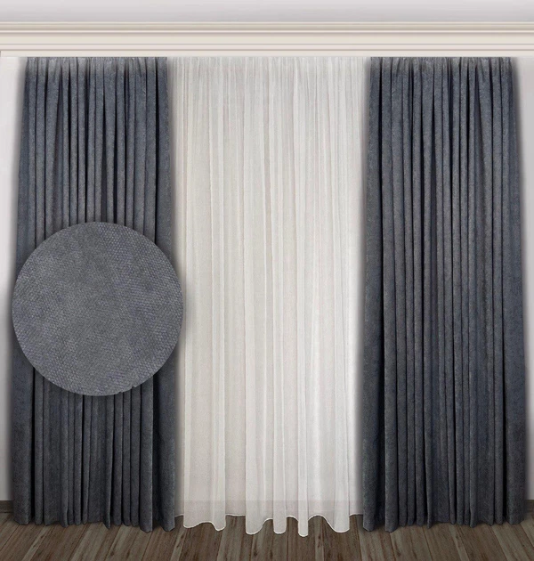 Комплект штор EkoShtory мікровелюр 200х230 cм, сірих №2501 2шт