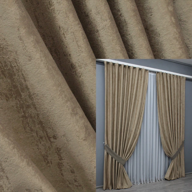 Комплект (2шт. 2х2, 9м.) штор з тканини оксамит, колекція "Афіна", Туреччина. Колір темно-бежевий. Код 1542ш 32-054 4943835