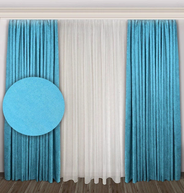 Комплект штор EkoShtory мікровелюр 200х255 cм, аква №2351 2шт
