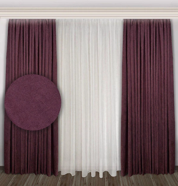 Комплект штор EkoShtory мікровелюр 200х270 cм, гнила вишня №2112 2шт