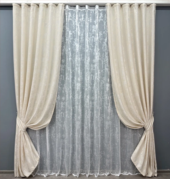 Комплект штор VR-Textil Жакард Мармур 200х270 2шт і Тюль 600х270 1763ш-1400т Молочний з білим 71-021/7