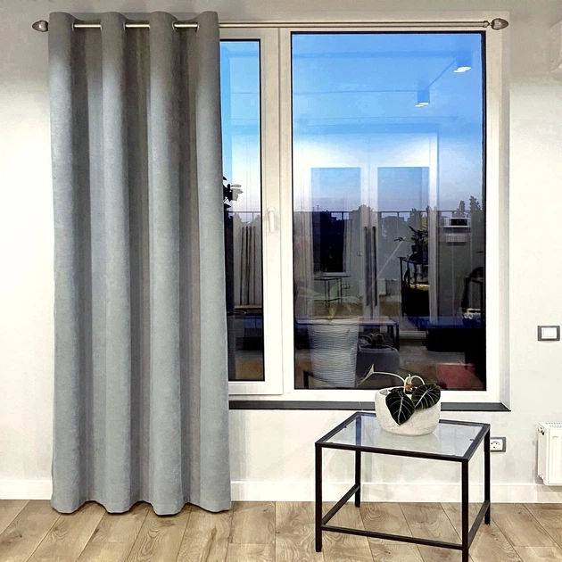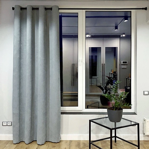Штора на сірих люверсах 1 шт 325х250 см мікровелюр Сіро-блакитний