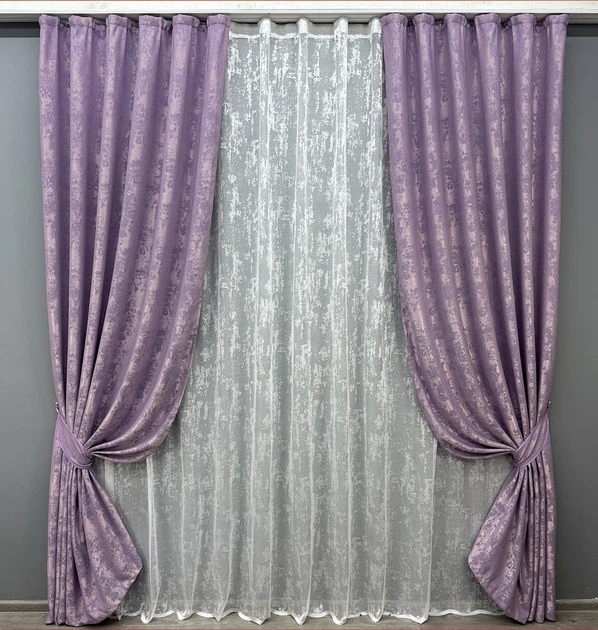 Комплект штор VR-Textil Жакард Мармур 200х270 2шт і Тюль 600х270 1764ш-1400т Бузковий з білим 71-020/7