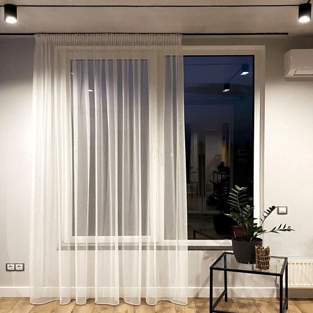 Тюль на сірих люверсах 325х250 см бамбук 1 шт. Тепло-білий
