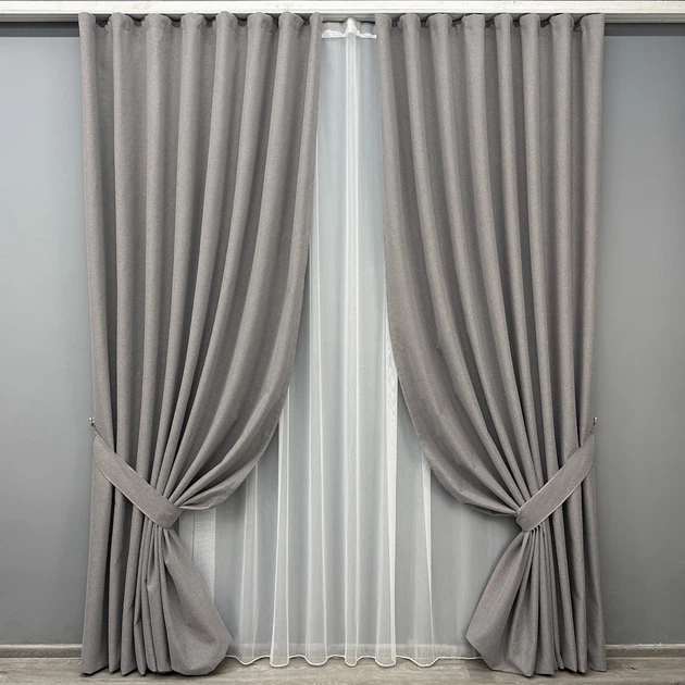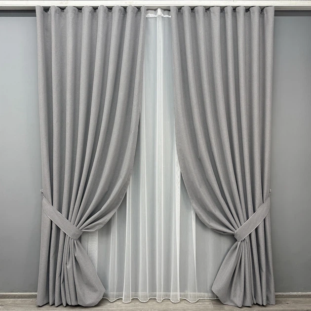 Комплект штор VR-Textil 100 блекаут ASHEN NIGHT 150х270 2шт і Тюль 500х270 1840ш-1153т світло-сірий з білим 71-087/4