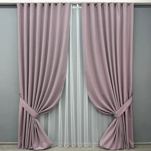Комплект штор VR-Textil 100 блекаут ASHEN NIGHT 150х270 2шт і Тюль 500х270 1843ш-1153т пудровий з білим 71-088/4