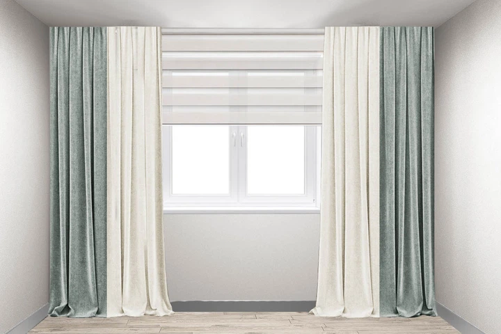 Штори Декорін Мікровелюр Дабл 300x255 см Молочні із сіро-м'ятним 2 шт. (ROZ6400064022)