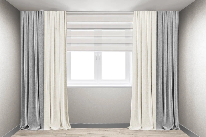 Штори Декорін Мікровелюр Дабл 300x255 см Молочні зі світло-сірим 2 шт. (ROZ6400064162)