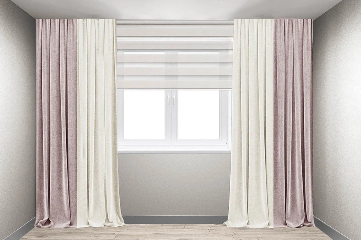 Штори Декорін Мікровелюр Дабл 300x270 см Молочні з ніжно-рожевим 2 шт. (ROZ6400063886)
