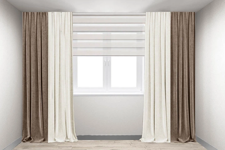 Штори Декорін Мікровелюр Дабл 300x265 см Молочні з капучино 2 шт. (ROZ6400063857)