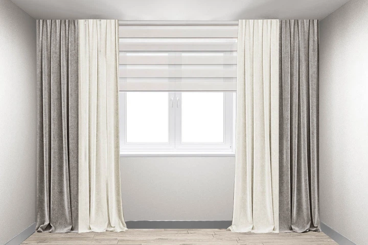 Штори Декорін Мікровелюр Дабл 300x250 см Молочні зі світло-сірим 2 шт. (ROZ6400064161)