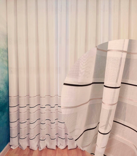 Тюль Декор-Ін Льон Скарлайн з мережкою та атласною смугою Біло-сірий з чорним 400х275 (Vi100832)