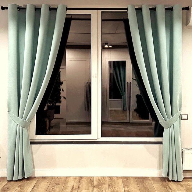 Комплект штори на чорних люверсах 2 шт з підхватами 175х250 см мікровелюр Світло-бірюзовий
