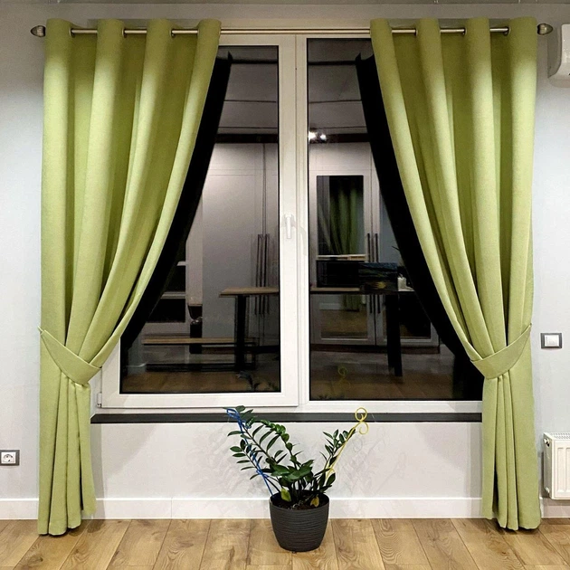 Комплект штори на сірих люверсах 2 шт з підхватами 175х250 см мікровелюр Світло-зелений