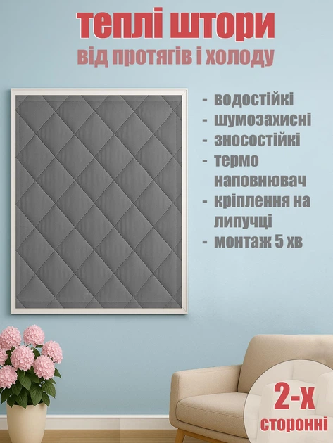 Штора теплозберігаюча (на липучках) Сіра - H 230*140 см