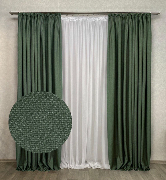 Комплект штор Льон-Рогожка, 200x220 колір хакі №70 , 2шт