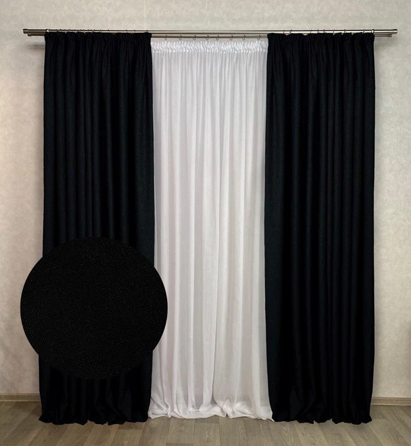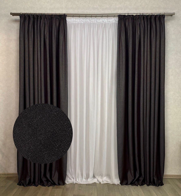 Комплект штор Льон-Рогожка, 200x260 колір чорний №83 , 2шт
