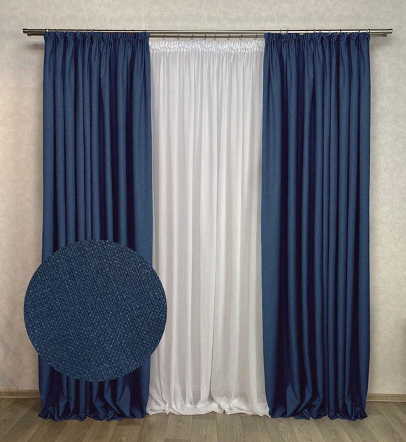 Комплект штор Льон-Рогожка, 200x235 колір темно-синій №63 , 2шт