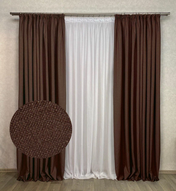 Комплект штор Льон-Рогожка, 200x265 колір каштановий №73 , 2шт