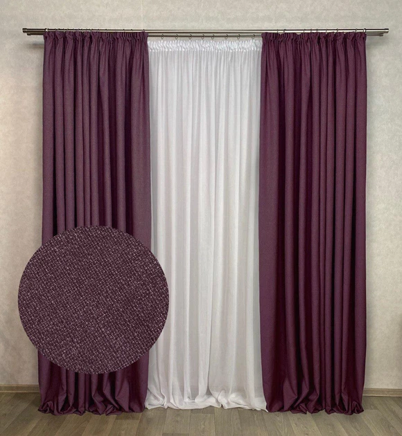 Комплект штор Льон-Рогожка, 200x270 колір бордовий №82 , 2шт