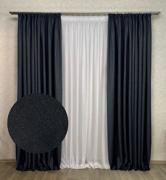 Комплект штор Льон-Рогожка, 200x245 колір мокрий асфальт №71 , 2шт