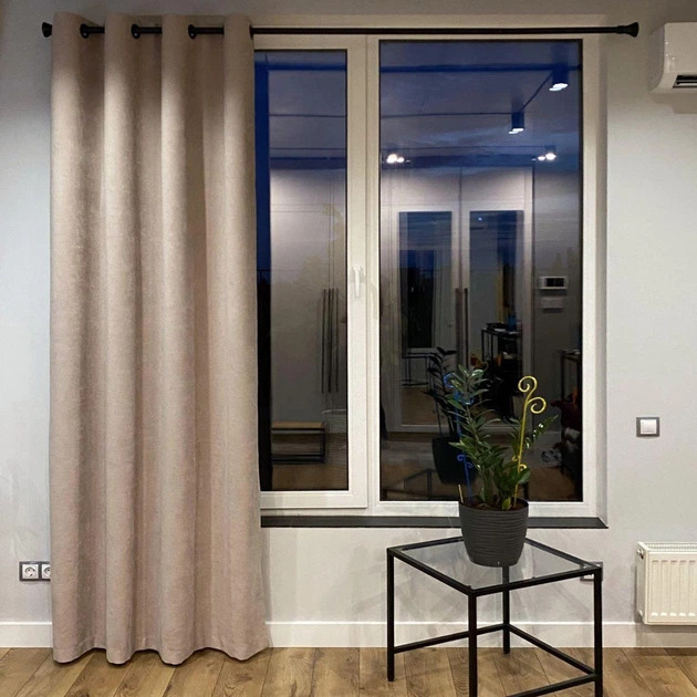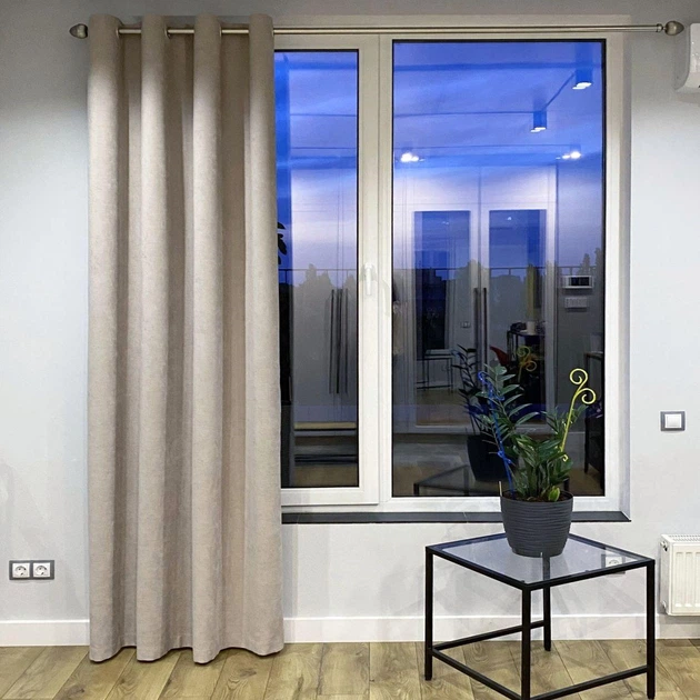 Штора на чорних люверсах 1 шт 355х250 см мікровелюр Беж-капучино