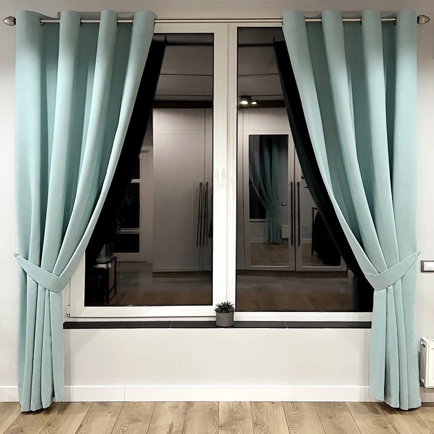 Комплект штори на чорних люверсах 2 шт з підхватами 385х250 см мікровелюр Світло-бірюзовий