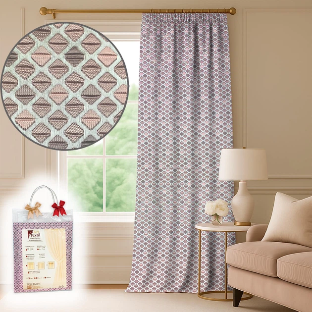 Штора жакардова Aurum 310250 см рожева з вишивкою у дрібну клітинку — для спальні та вітальні