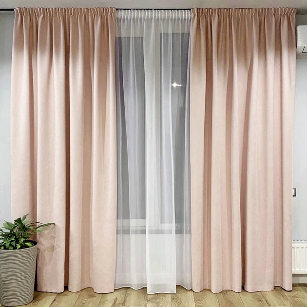 Комплект штори на тасьмі 2 шт 300х250 мікровелюр Світло-рожевий, тюль вуаль 450х250 Білий