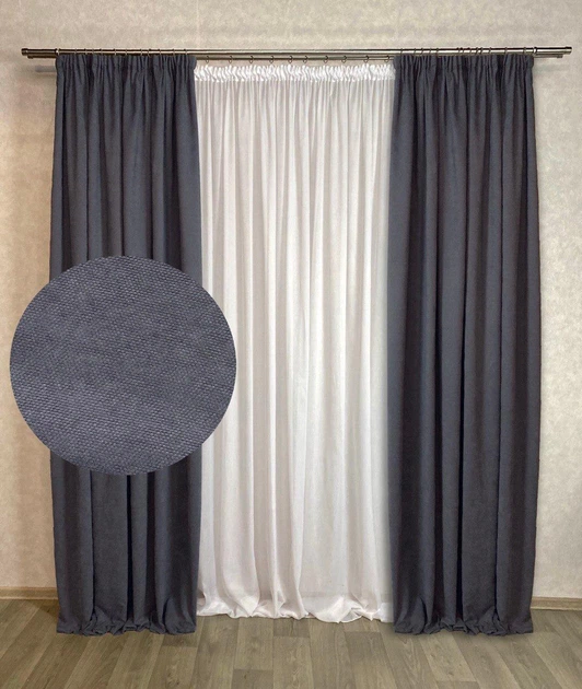 Комплект штор Diamond мікровелюр 300х230 антрацитових №801, 2 шт.