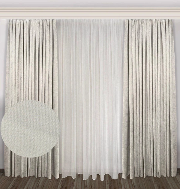Комплект штор EkoShtory мікровелюр 300х265 см, ванільний №2519 2шт